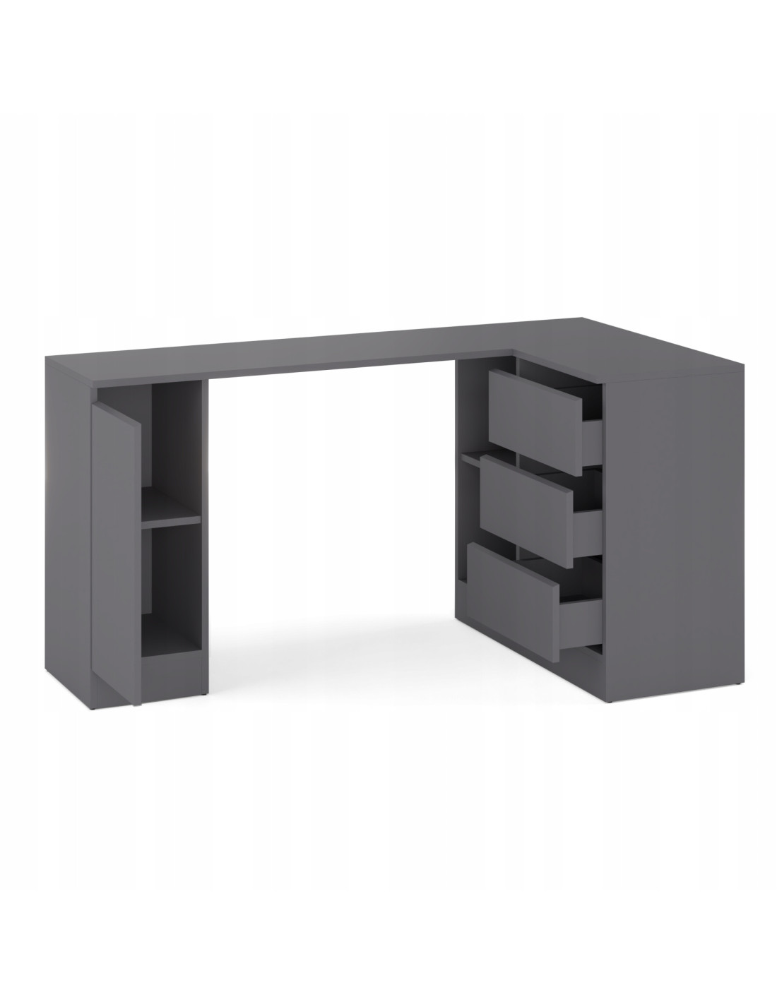 BIURKO NAROŻNE SZUFLADY GRAFIT 155x85x78cm BEZUCHWYTOWA BIURO