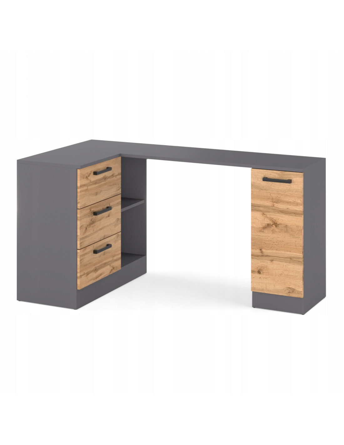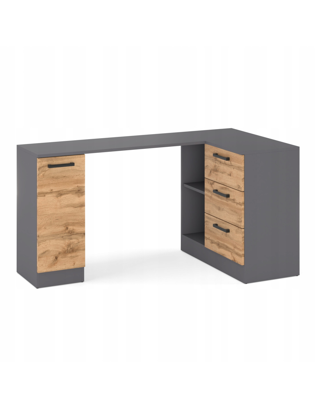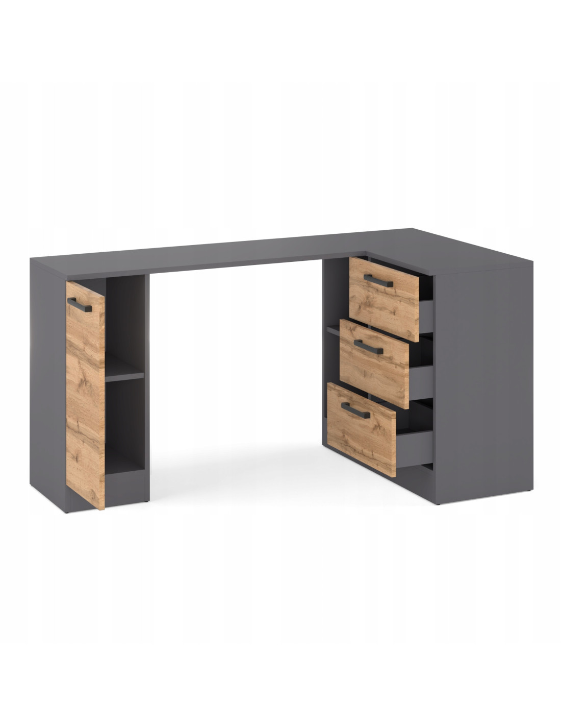 BIURKO NAROŻNE NOWOCZESNE SZUFLADY GRAFIT/ DĄB WOTAN 155x85x78 cm BIURO
