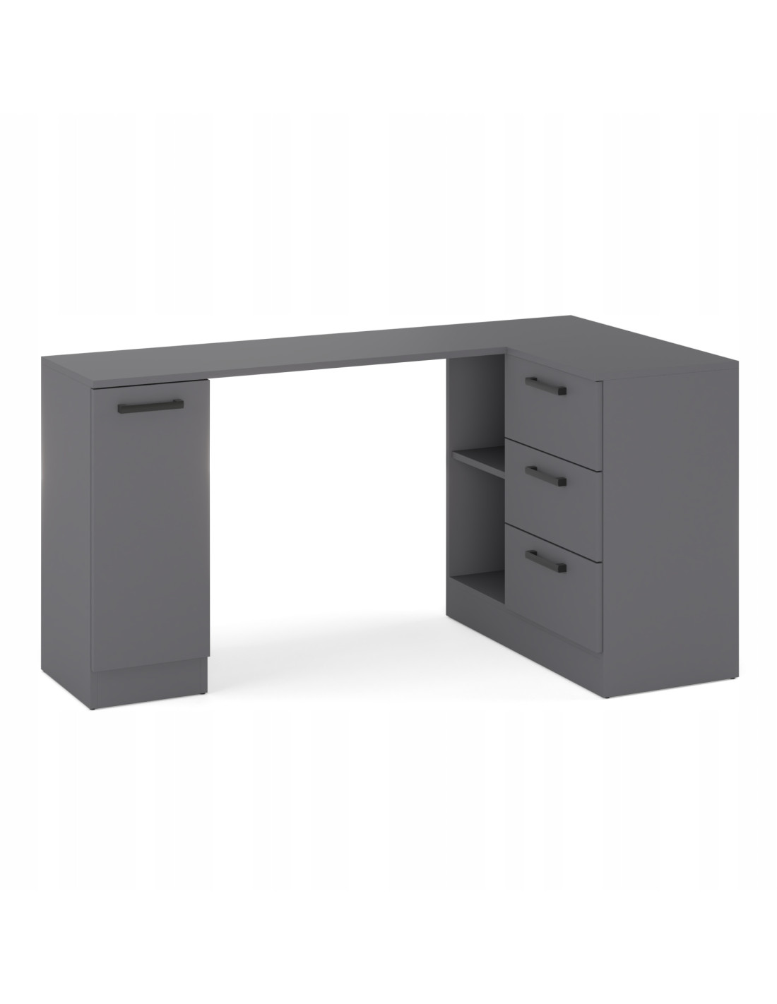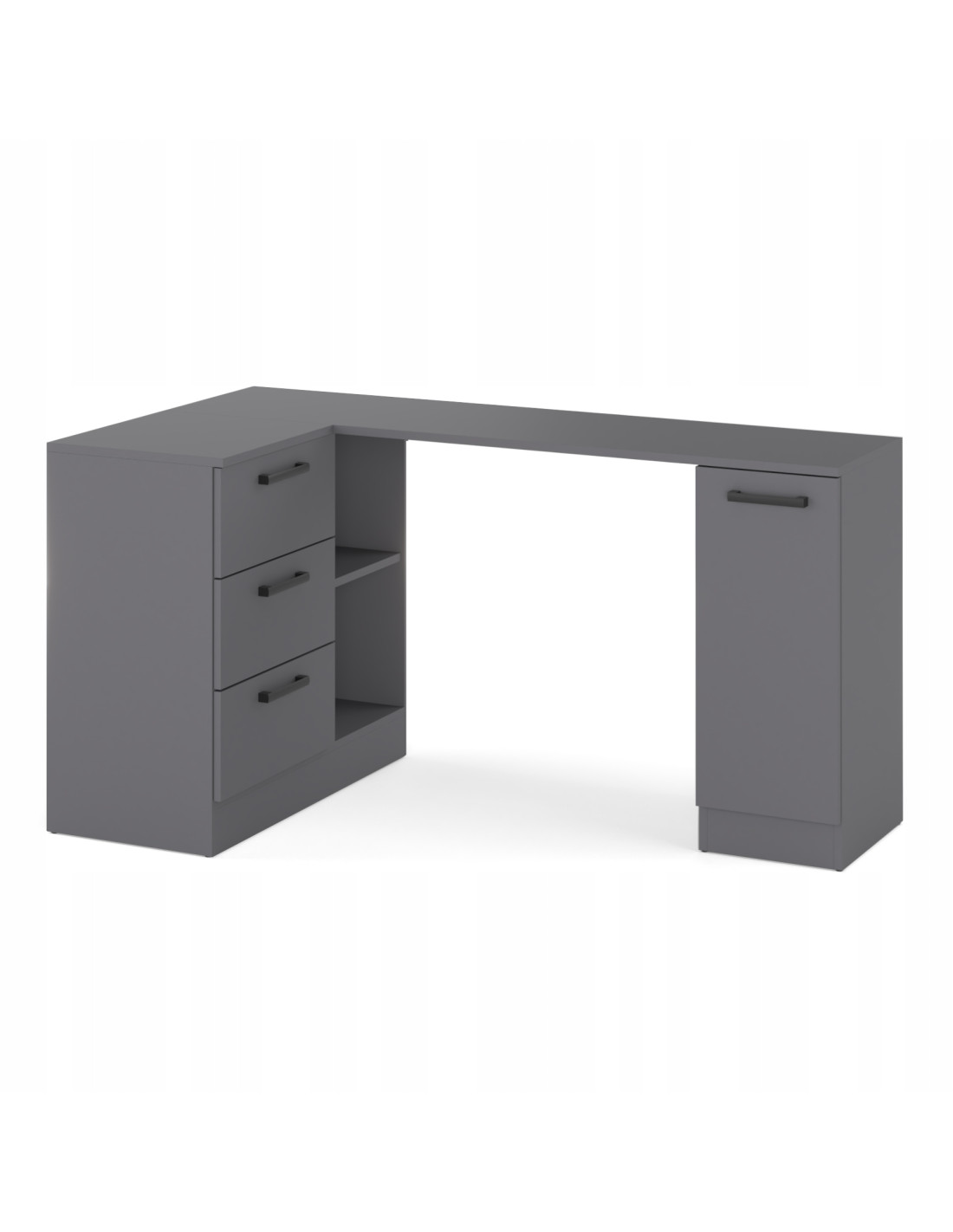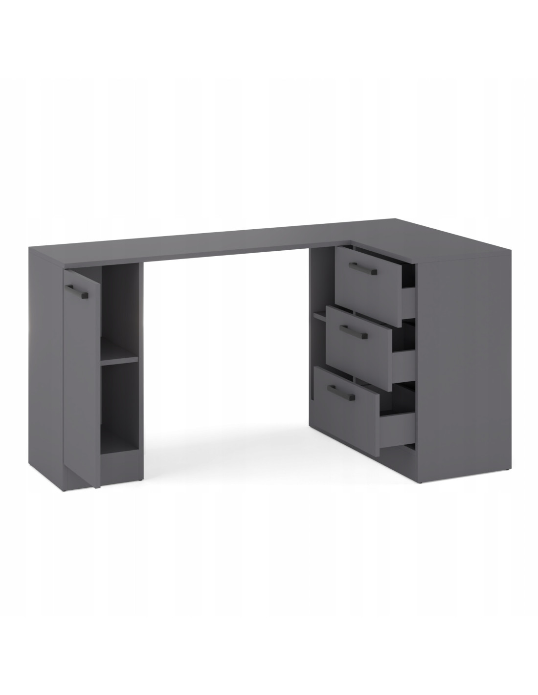 BIURKO NAROŻNE NOWOCZESNE SZUFLADY GRAFIT 155x85x78 cm KONTENEREK BIURO
