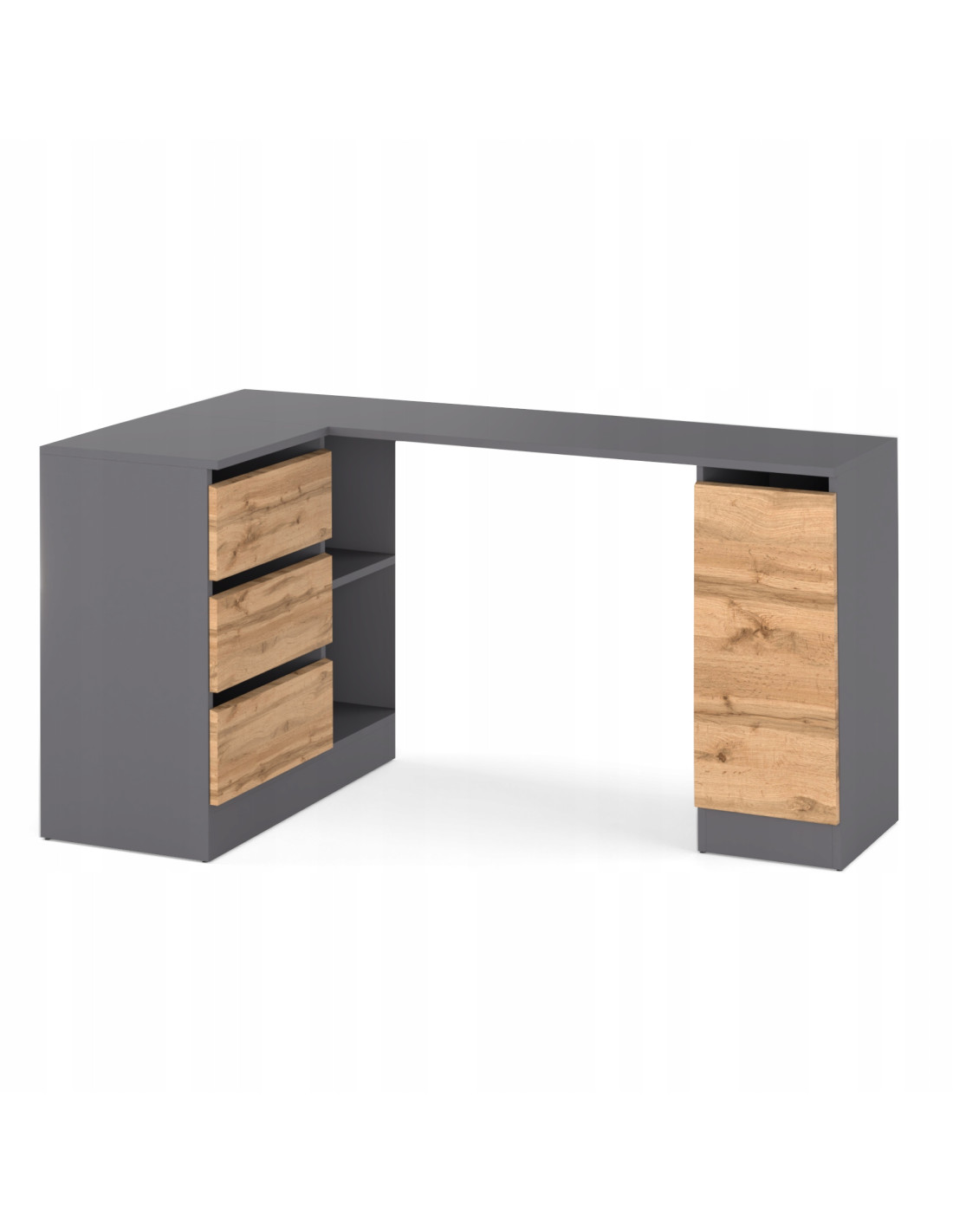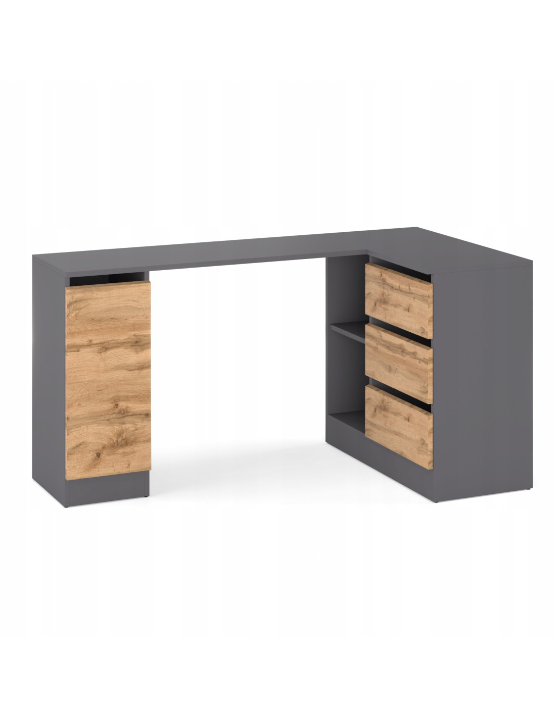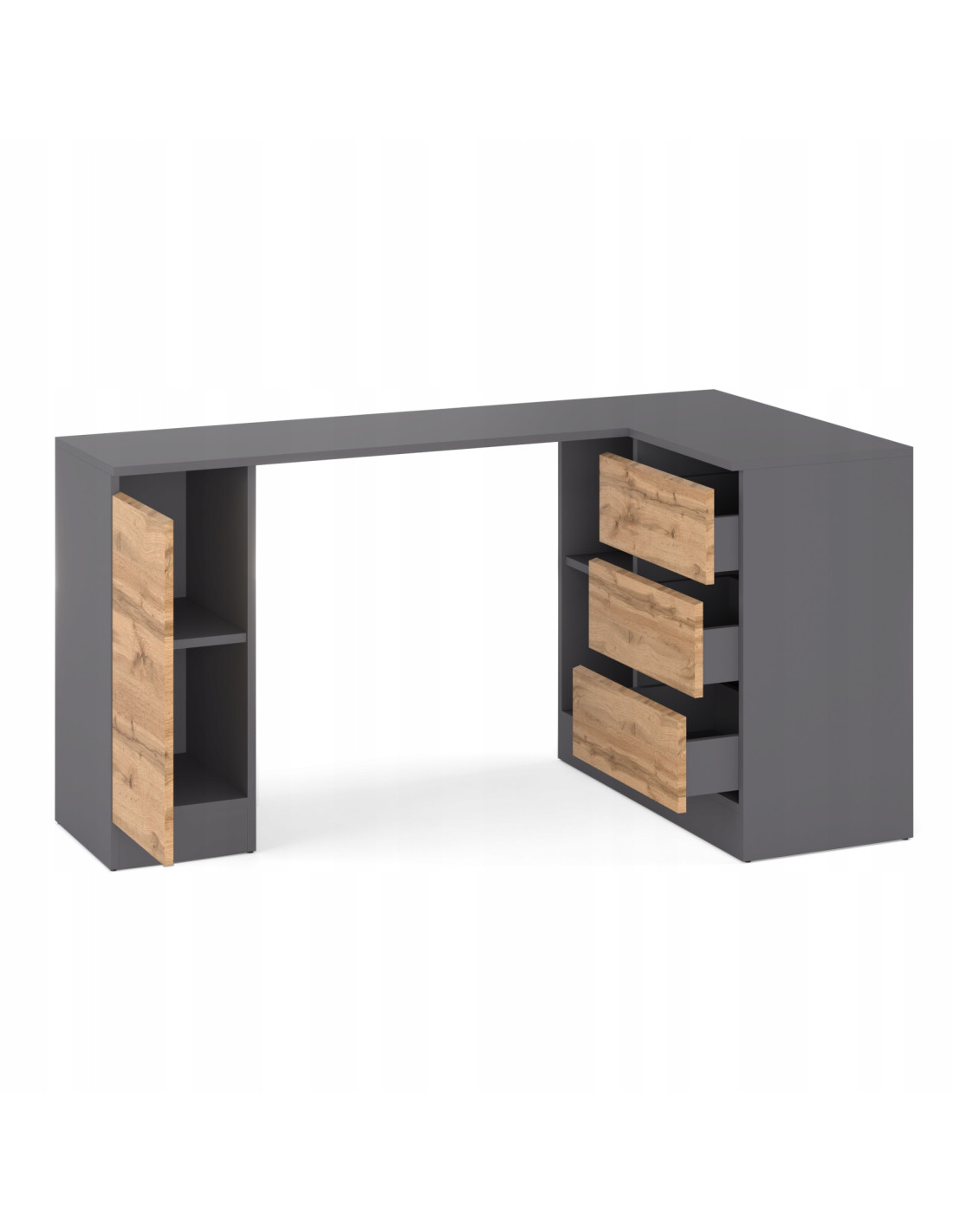 BIURKO NAROŻNE SZUFLADY GRAFIT/ DĄB WOTAN 155x85x78cm BEZUCHWYTOWA BIURO