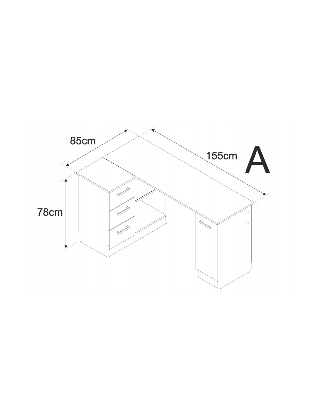 Wykonane z wysokiej jakości płyty laminowanej, biurko gwarantuje trwałość i odporność na codzienne użytkowanie. Trzy praktyczne szuflady oraz dwie półki zapewniają wystarczająco dużo miejsca na przechowywanie dokumentów, przyborów biurowych czy innych niezbędnych akcesoriów.