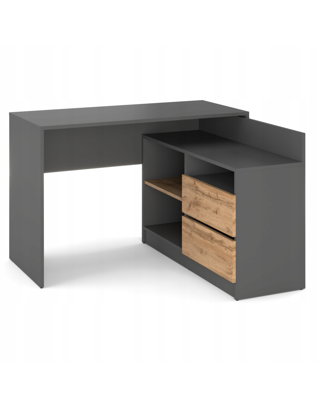 Biurko narożne i komoda zestaw 120x50 dąb wotan mix antracyt K1+B1