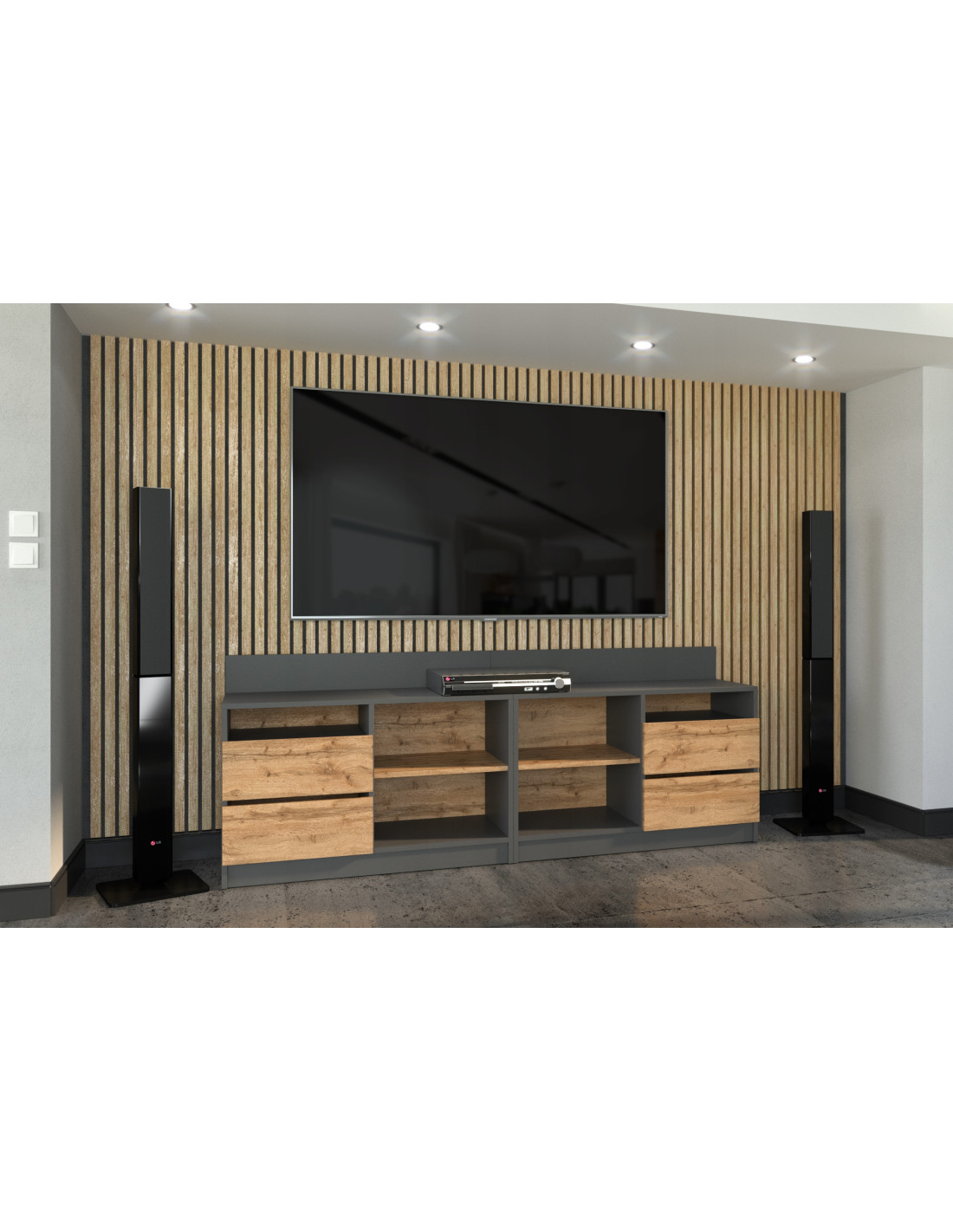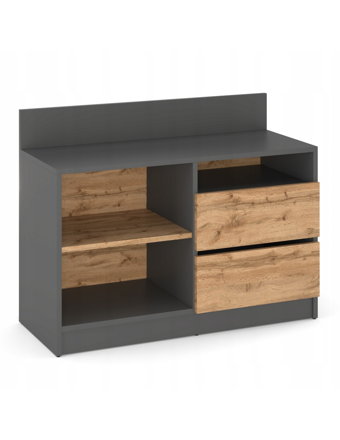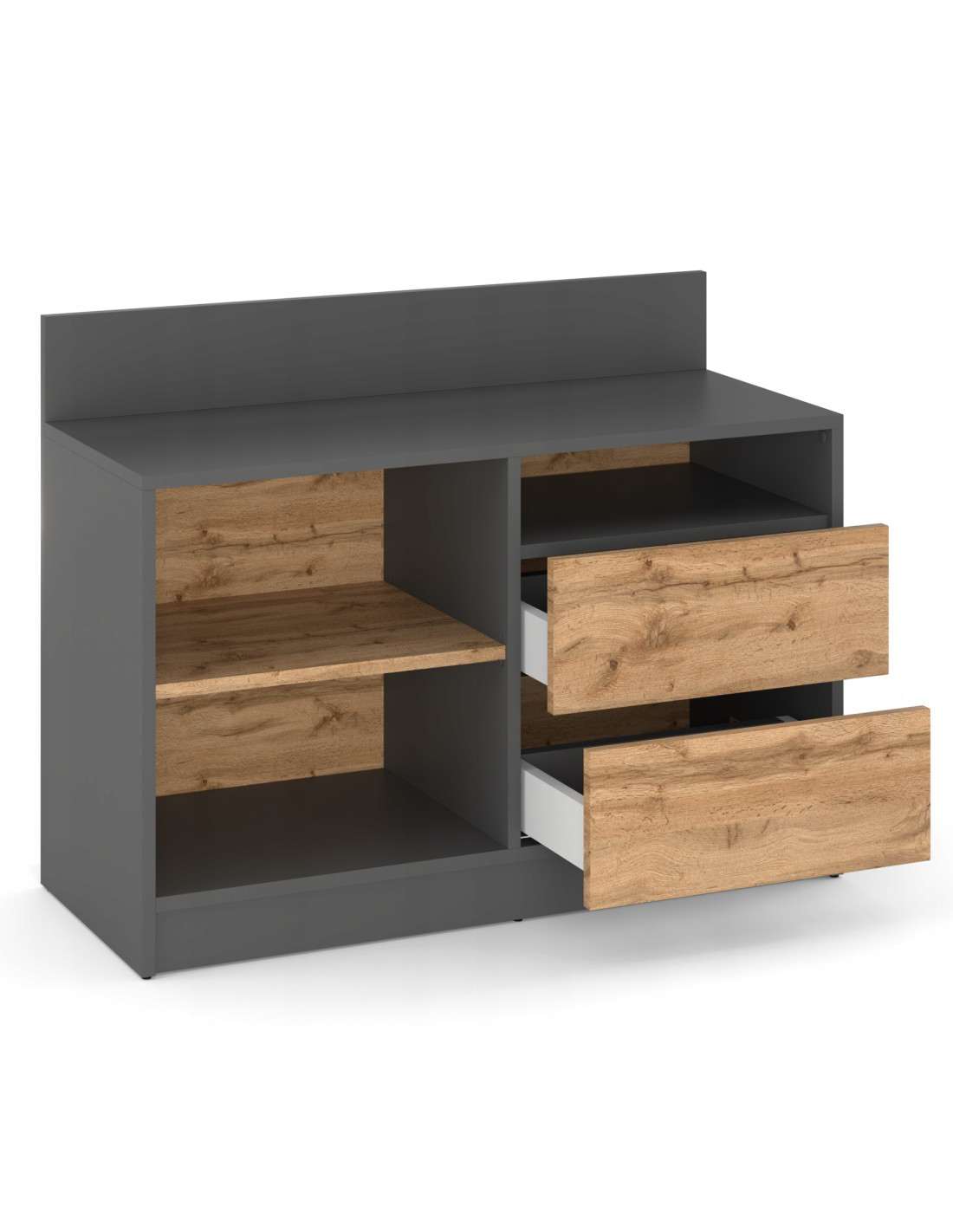 KOMODA 100CM POJEMNA,DUŻA,SZAFKA RTV 2 SZUFLADY GRAFIT/ DĄB WOTAN