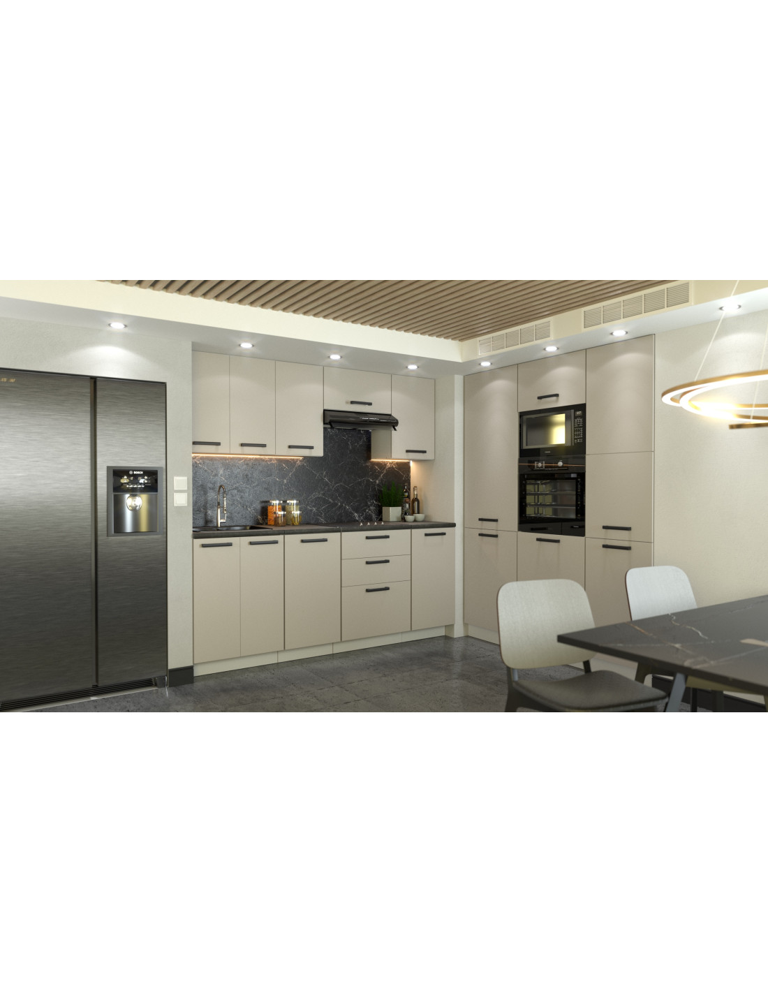 Nowoczesny design – front w kolorze Kaszmir w połączeniu z białym korpusem tworzy ponadczasową i elegancką całość.