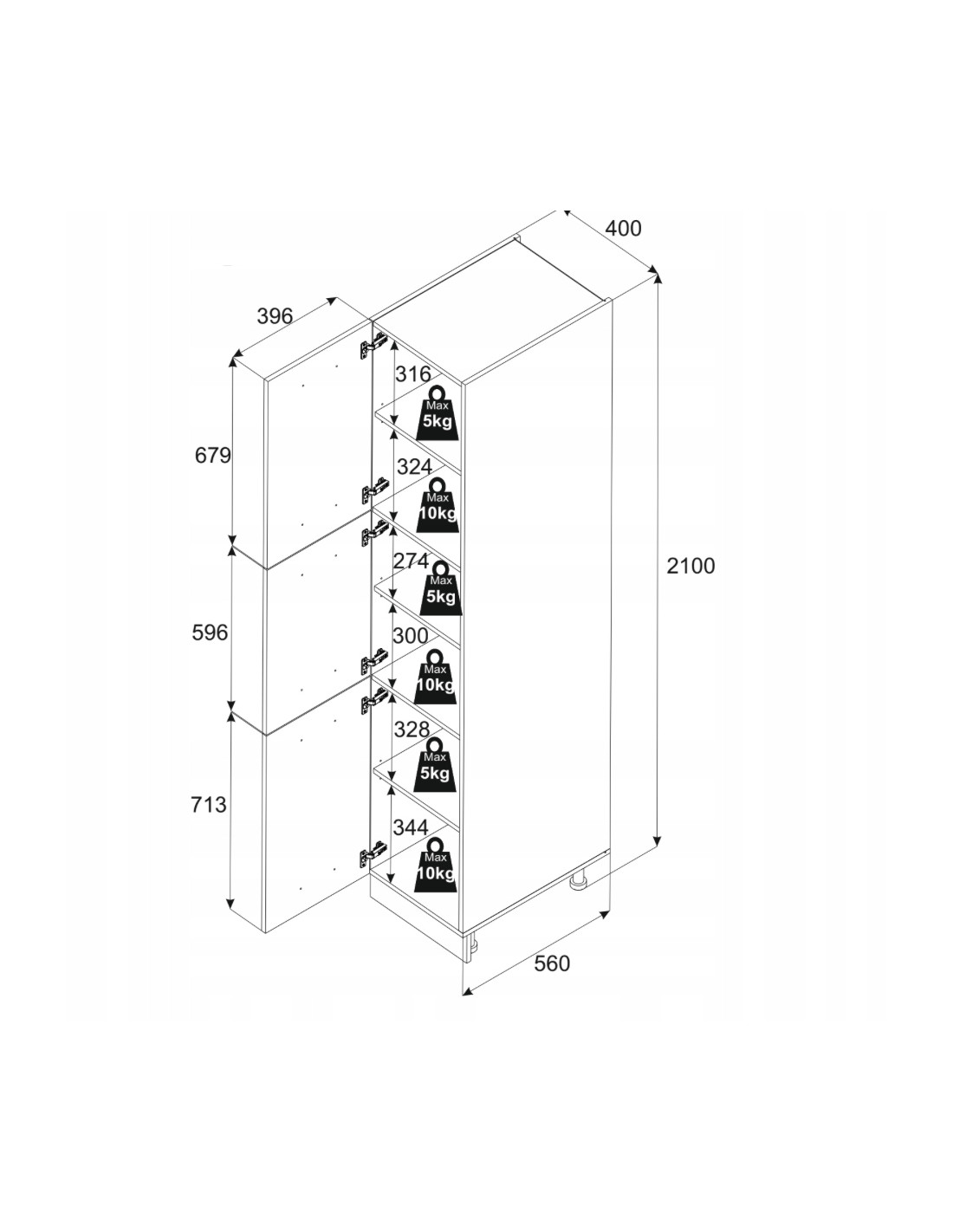 Szafka kuchenna dolna wysoka słupek gospodarczy słup 40 cm 3 fronty Biały Mat | Meble kuchenne system EKO