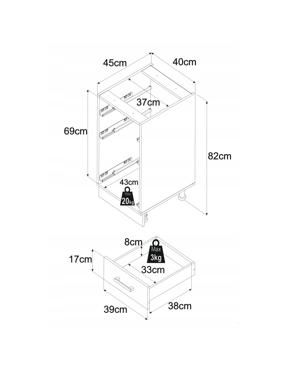 Szafka kuchenna dolna stojąca 40 cm z 3 szufladami - BEZ BLATU