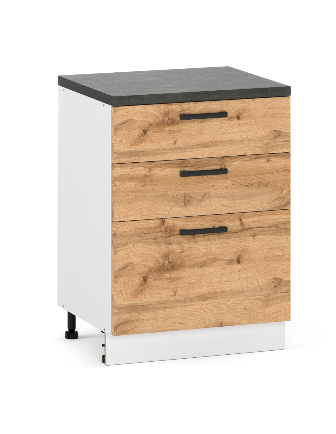 Szafka kuchenna dolna stojąca 60 cm 3 szuflady Dąb Wotan | Meble kuchenne system EKO