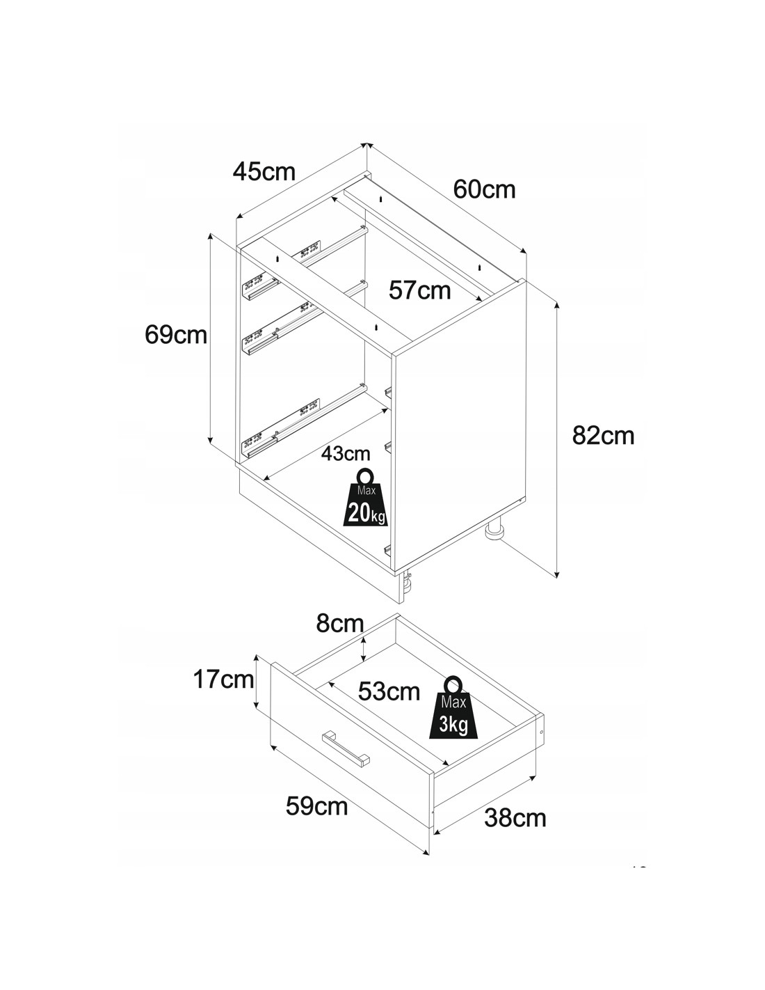 Szafka kuchenna dolna stojąca 60 cm z 3 szufladami - BEZ BLATU