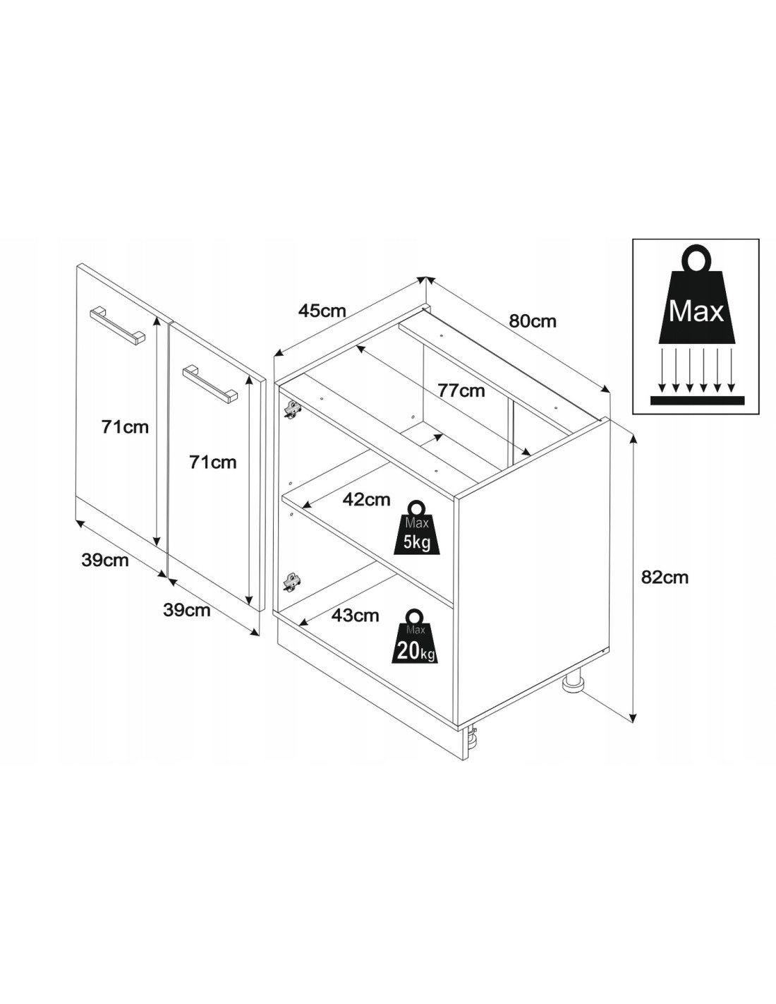 Szafka kuchenna dolna stojąca 80 cm z 2 frontami - BEZ BLATU