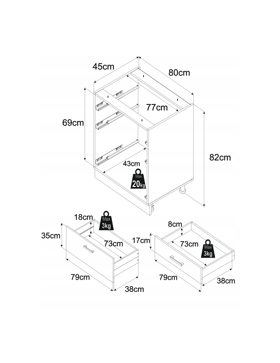 Szafka kuchenna dolna stojąca 80 cm z 3 szufladami - BEZ BLATU