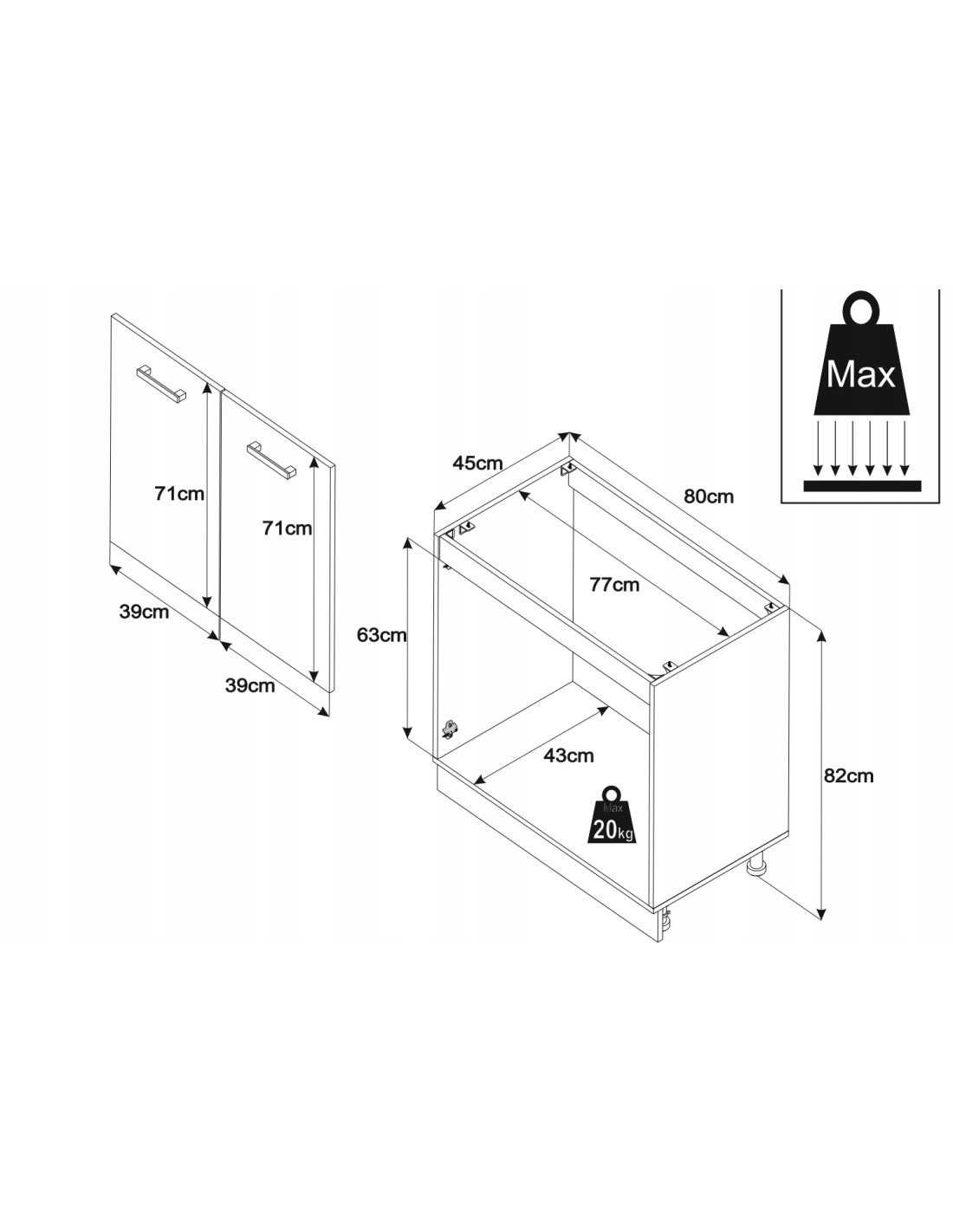 Szafka kuchenna dolna stojąca 80 cm z 2 frontami Zlewowa - BEZ BLATU