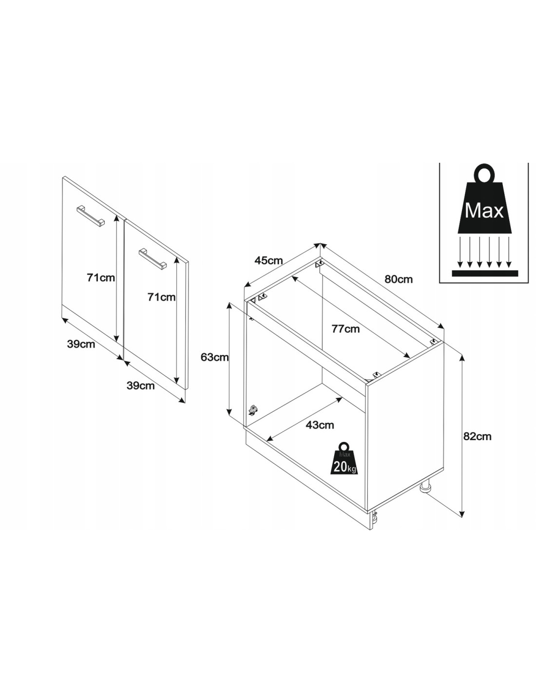 Szafka kuchenna dolna stojąca 80 cm z 2 frontami Zlewowa - BEZ BLATU