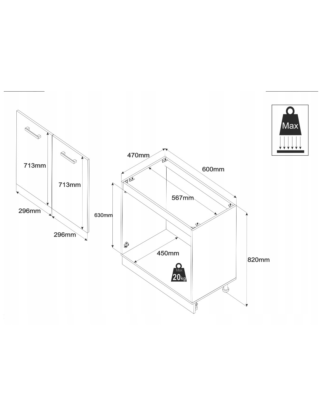 Szafka kuchenna pod zlew bez blatu to funkcjonalny element wyposażenia, który ułatwia organizację przestrzeni w kuchni. Stanowi idealną bazę do montażu zlewu, jednocześnie zapewniając wygodne miejsce do przechowywania środków czystości, kosza na śmieci czy innych akcesoriów kuchennych. Dzięki solidnej konstrukcji i wysokiej jakości materiałom, szafka jest trwała, odporna na wilgoć i łatwa w utrzymaniu czystości.