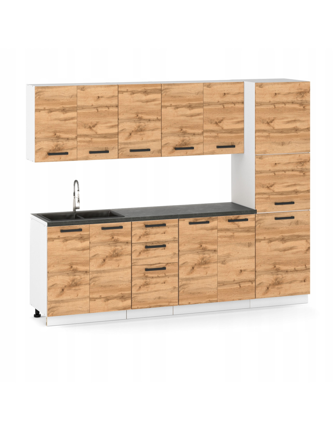 MEBLE KUCHENNE KUCHNIA ZESTAW SZAFKI SŁUPEK BLAT MILAN 2,6M DĄB WOTAN