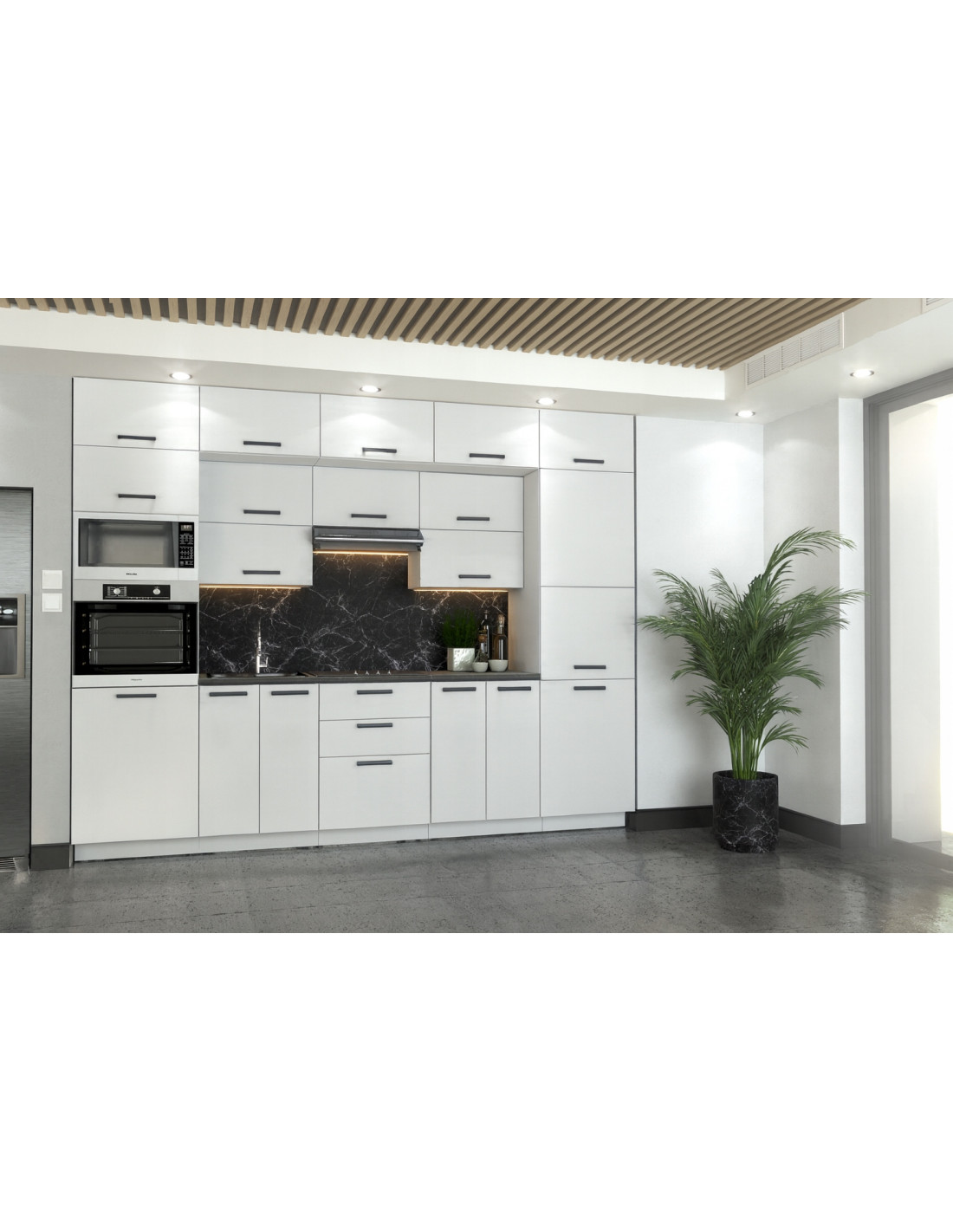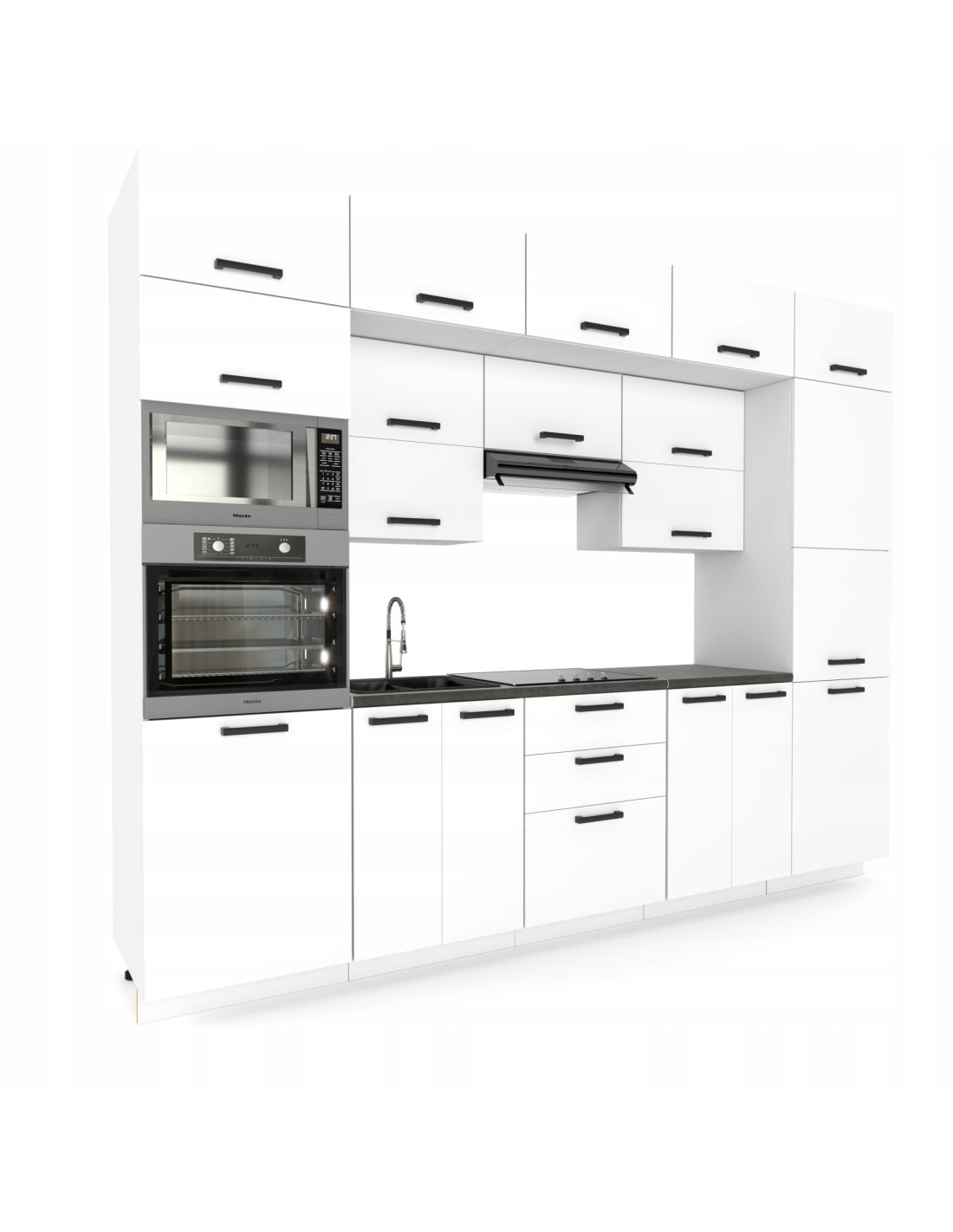 MEBLE KUCHENNE KUCHNIA ZESTAW SŁUPEK PIEKARNIK MIKROFALA 300CM BIAŁY MAT