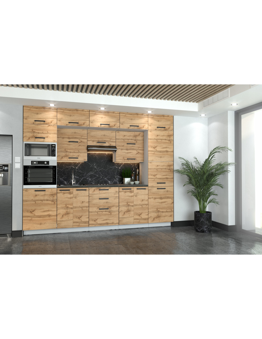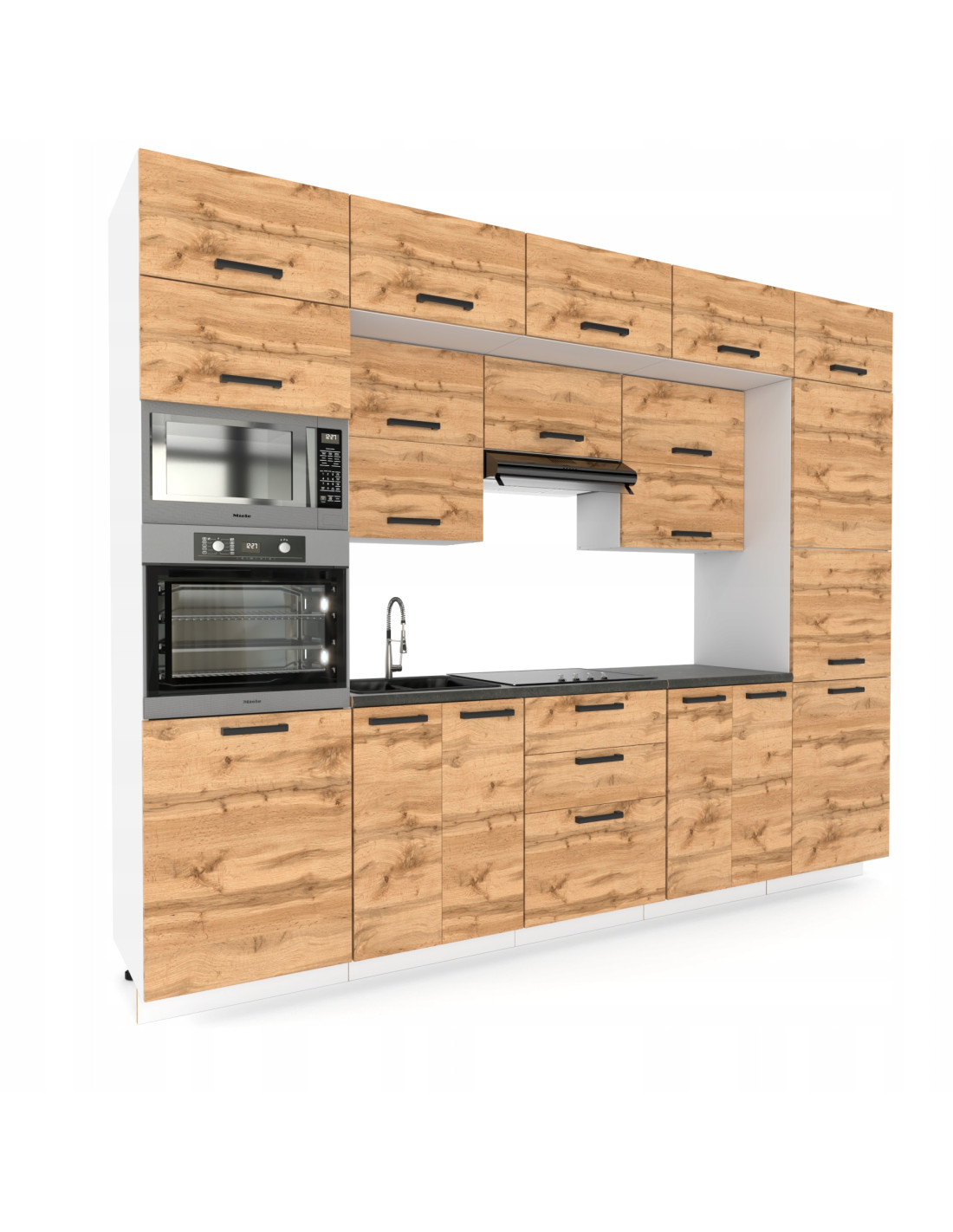 MEBLE KUCHENNE KUCHNIA ZESTAW SŁUPEK PIEKARNIK MIKROFALA 300CM DĄB WOTAN