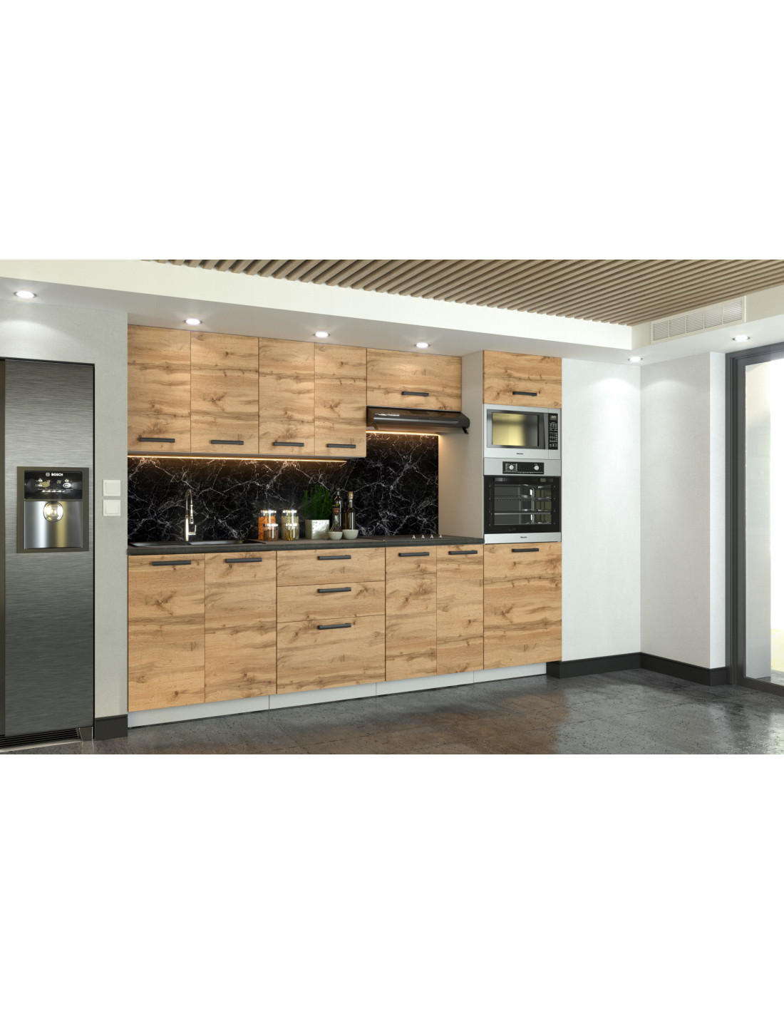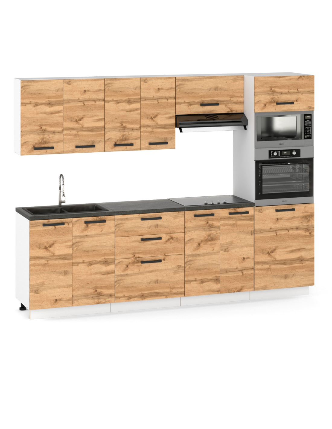 MEBLE KUCHENNE KUCHNIA ZESTAW SŁUPEK,PIEKARNIK MIKROFALA 260CM DĄB WOTAN