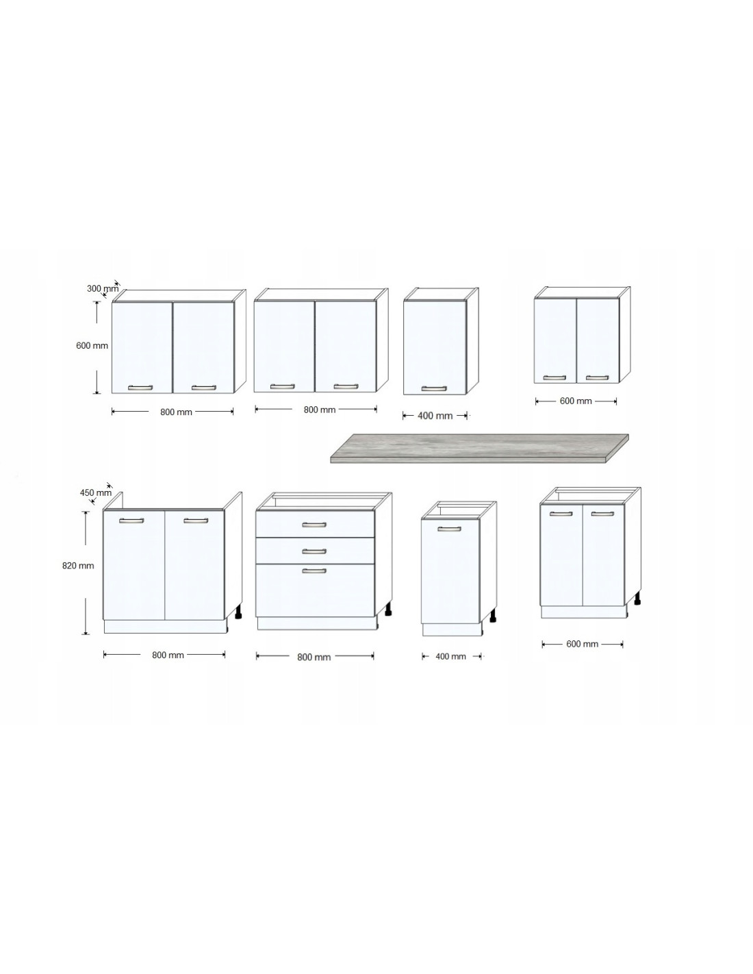 - oraz 180 cm blatu w cenie zestawu cięty na każda szafkę z osobna, szafka pod zlew nie posiada blatu!!!
