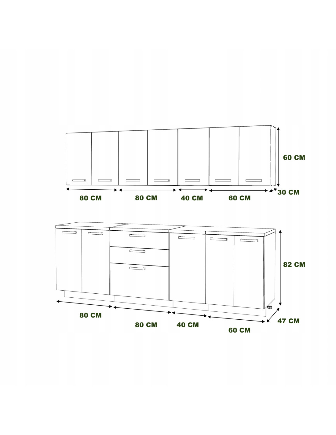 - górne szafki mają 60 cm wysokości i 32 cm głębokości