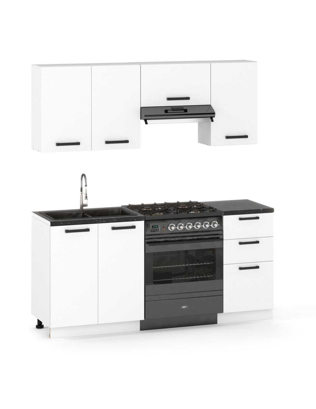 ULWEHOME Meble kuchenne Zestaw mebli kuchennych Kuchnia Barcelona 180cm | szafka • regał • blat • aneks kuchenny | Biały Mat 1,8 m