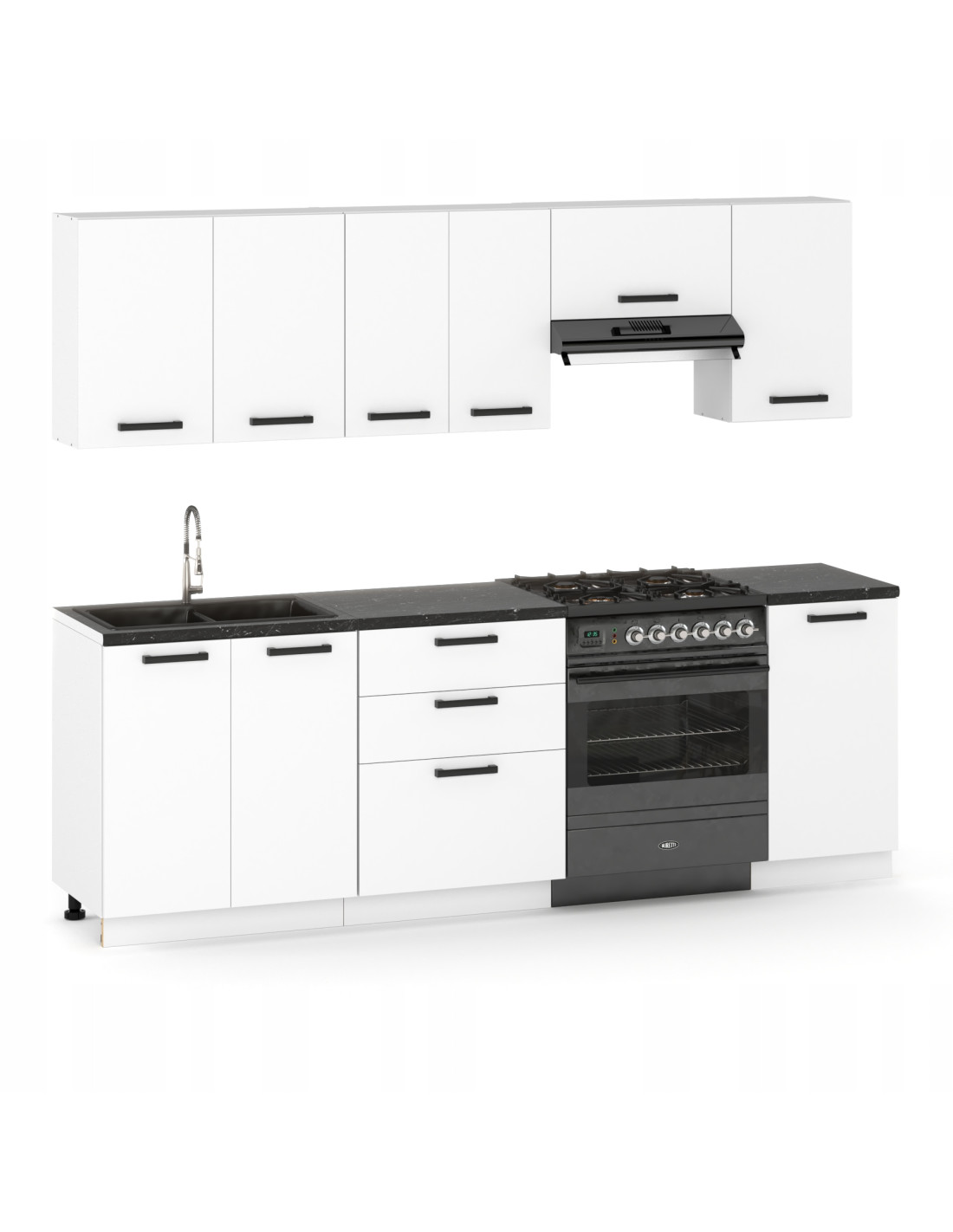 ULWEHOME Meble kuchenne Zestaw mebli kuchennych Kuchnia Lizbona 240cm | szafka • regał • blat • aneks kuchenny | Biały Mat 2,4 m