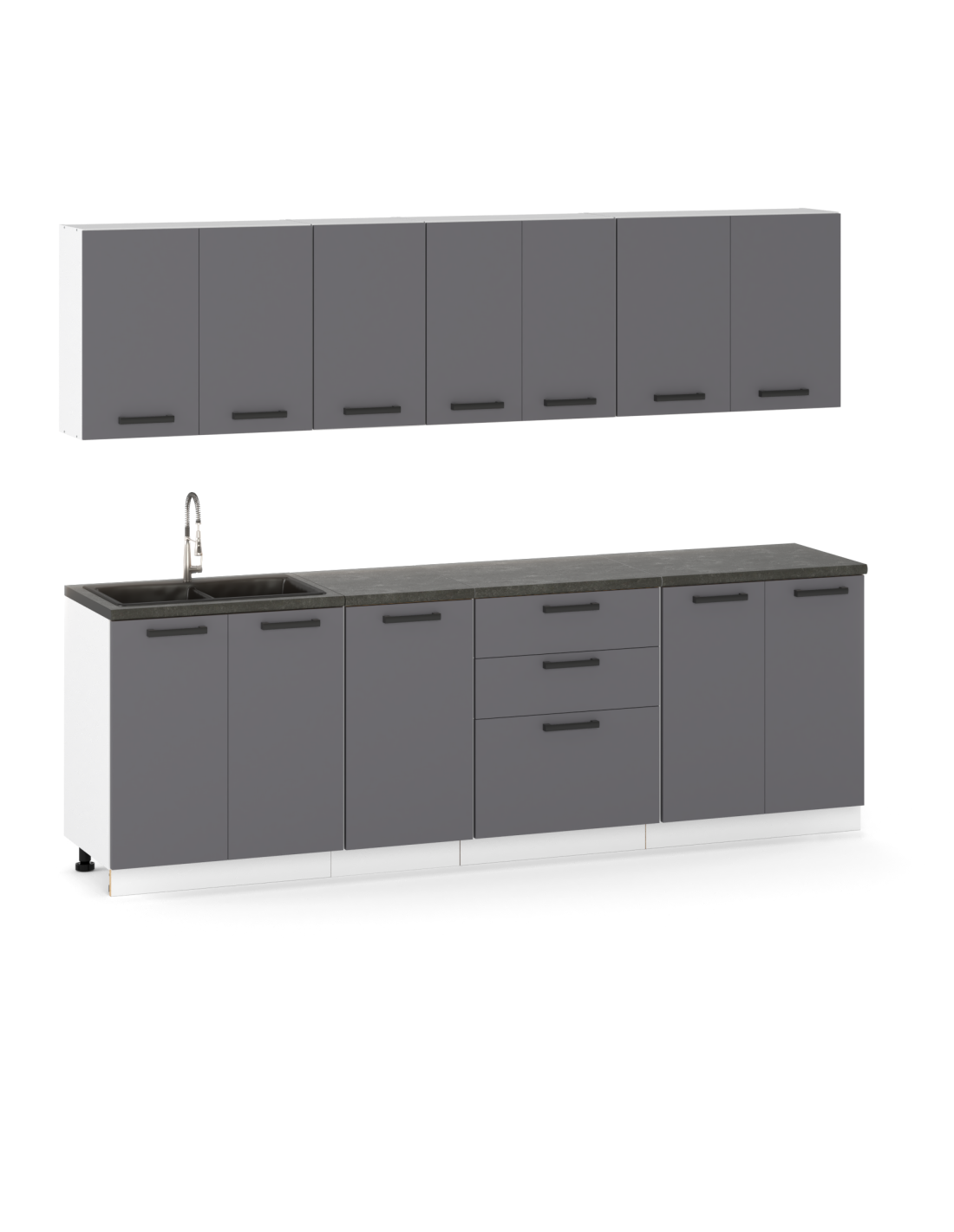 Meble kuchenne Zestaw mebli kuchennych Kuchnia Milan 260cm | szafka • regał • blat • aneks kuchenny | Antracyt 2,6 m