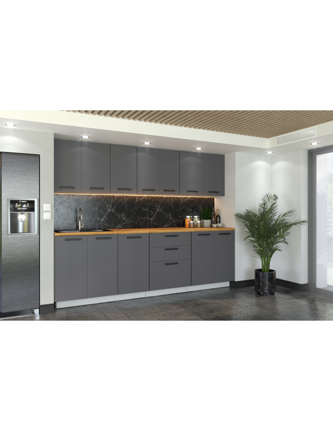 ULWEHOME Meble kuchenne Zestaw mebli kuchennych Kuchnia Milan 260cm | szafka • regał • blat • aneks kuchenny | Antracyt 2,6 m