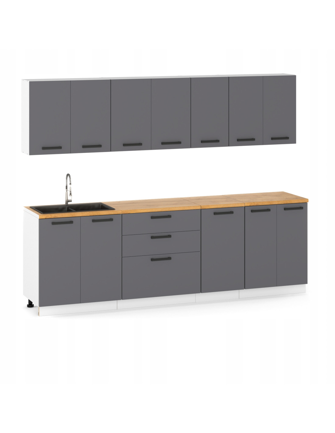 ULWEHOME Meble kuchenne Zestaw mebli kuchennych Kuchnia Milan 260cm | szafka • regał • blat • aneks kuchenny | Antracyt 2,6 m