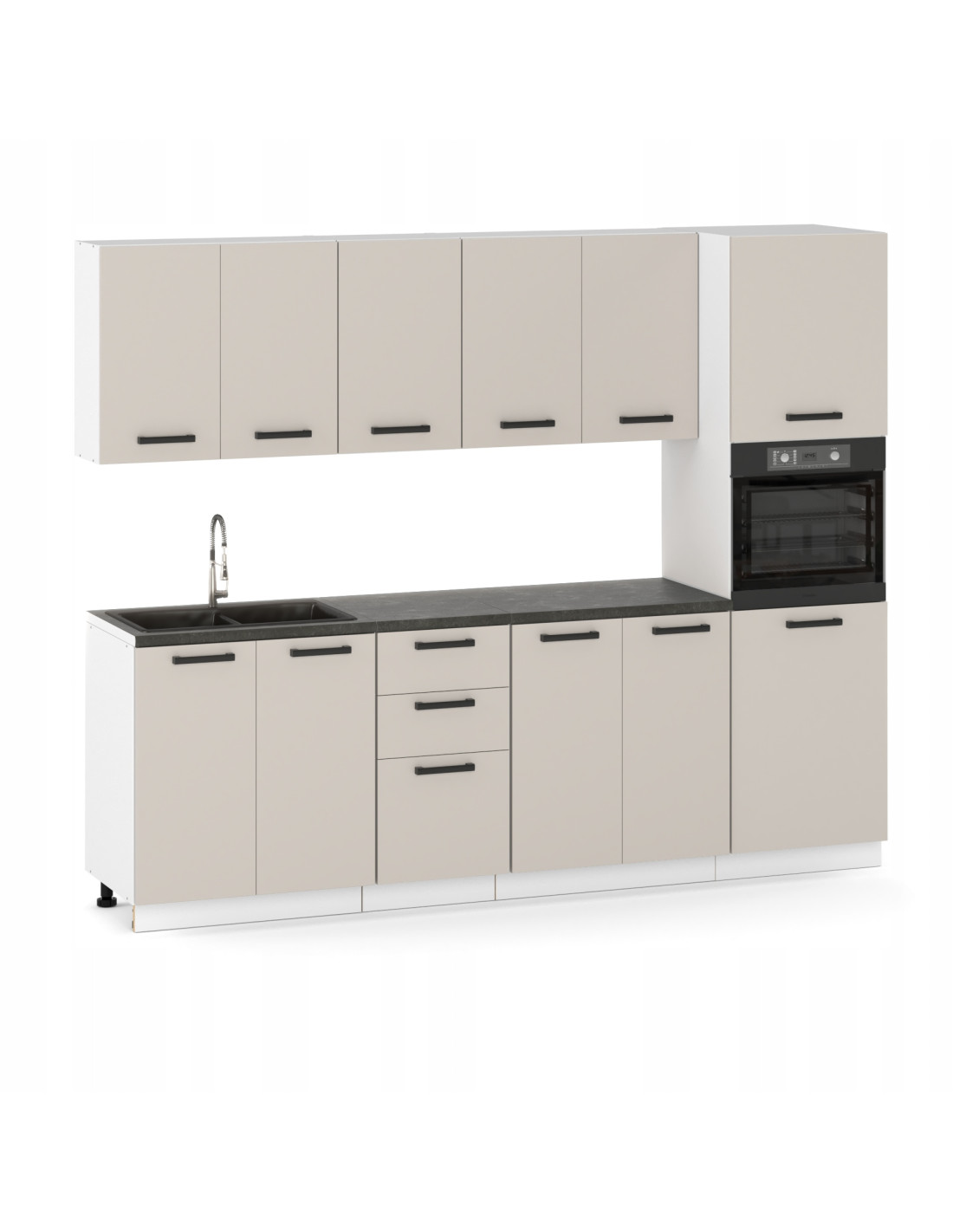 ULWEHOME Meble kuchenne Zestaw mebli kuchennych Kuchnia Milan 260cm Słupek piekarnik | szafka • regał • blat • aneks kuchenny • zabudowa piekarnika | Kaszmir 2,6 m Słup piekarnikowy