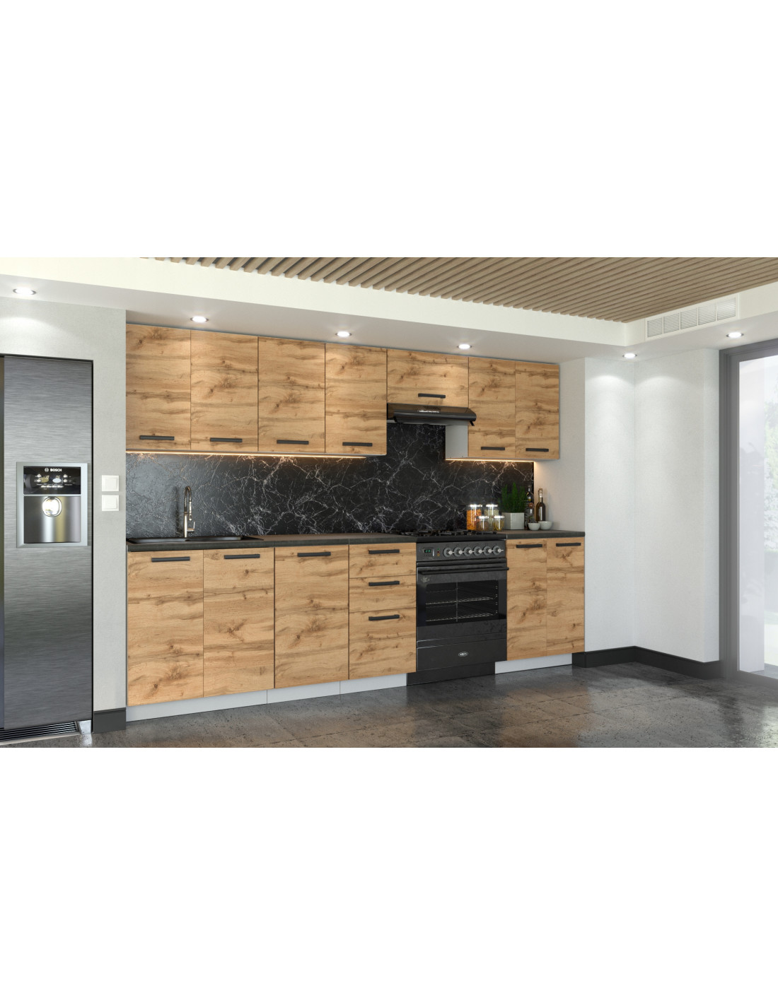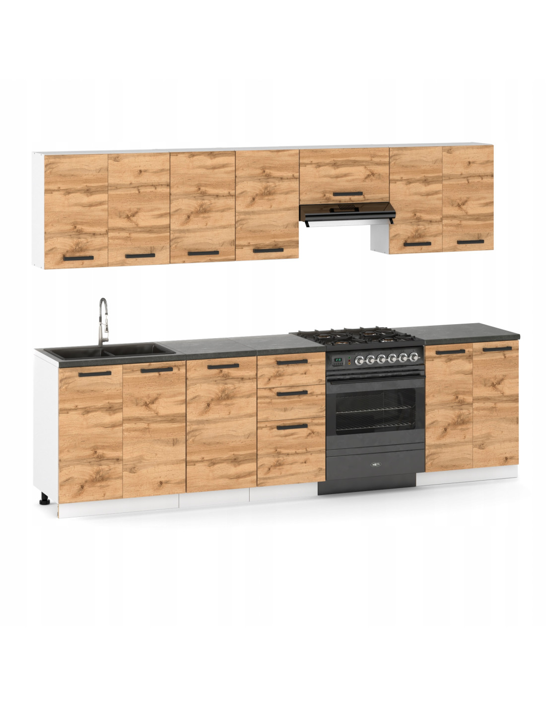 Meble kuchenne Zestaw mebli kuchennych Kuchnia Mediolan 280cm|szafka •regał •blat •aneks kuchenny •nowa kuchnia|Dąb Wotan 2,8m