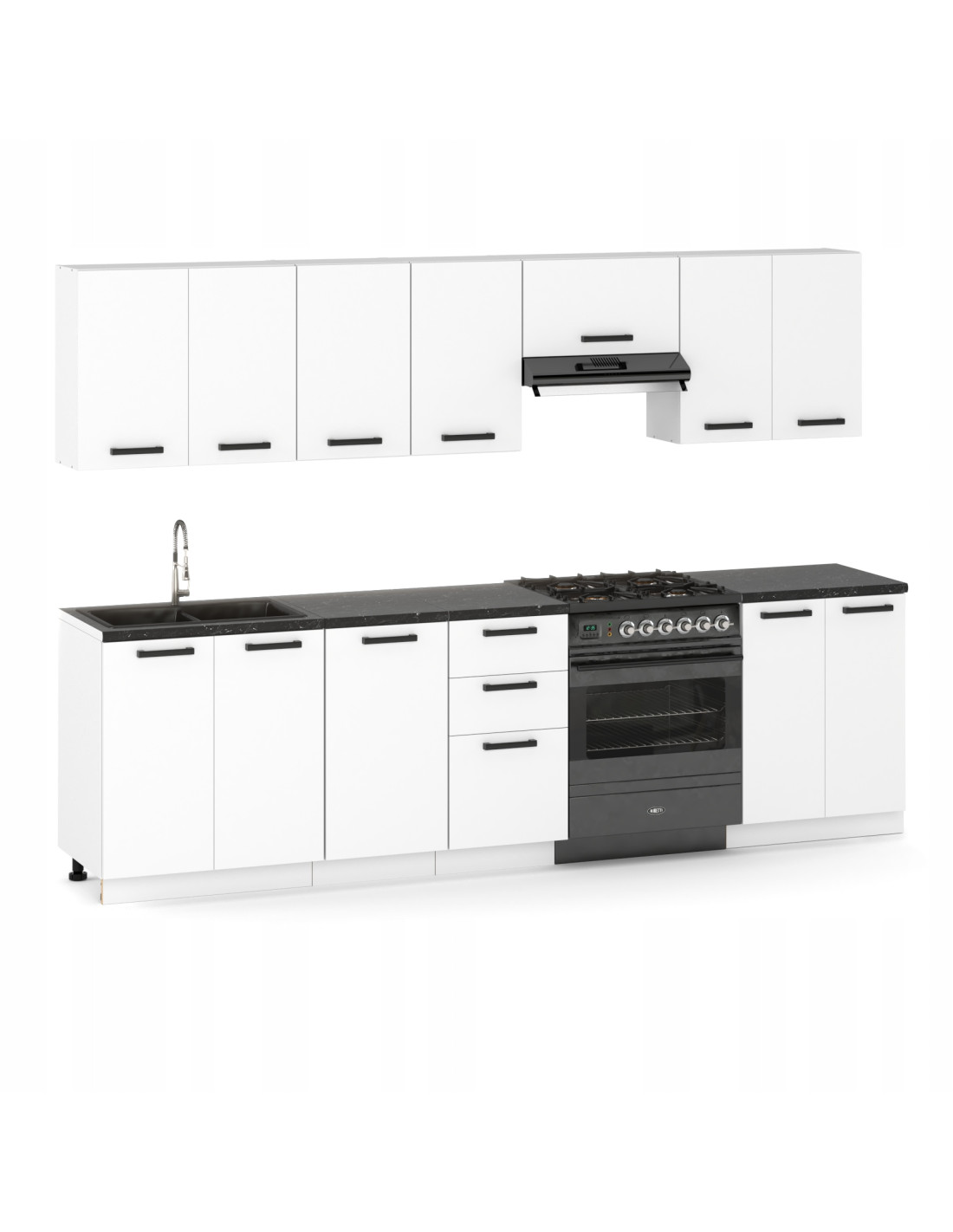 ULWEHOME Meble kuchenne Zestaw mebli kuchennych Kuchnia Mediolan 280cm | szafka • regał • blat • aneks kuchenny | Biały Mat 2,8 m