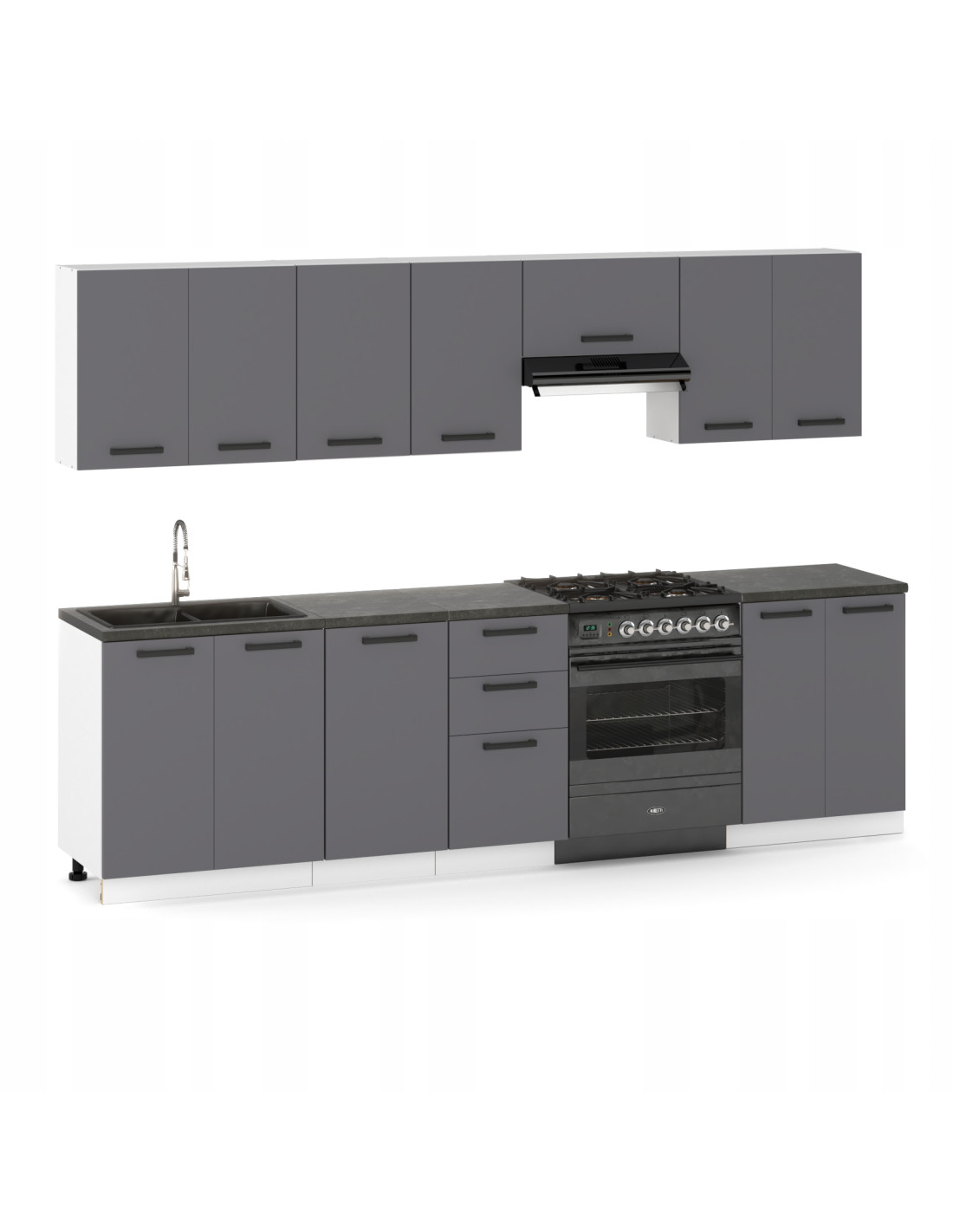 Meble kuchenne Zestaw mebli kuchennych Kuchnia Mediolan 280cm|szafka •regał •blat •aneks kuchenny •nowa kuchnia|Antracyt 2,8m