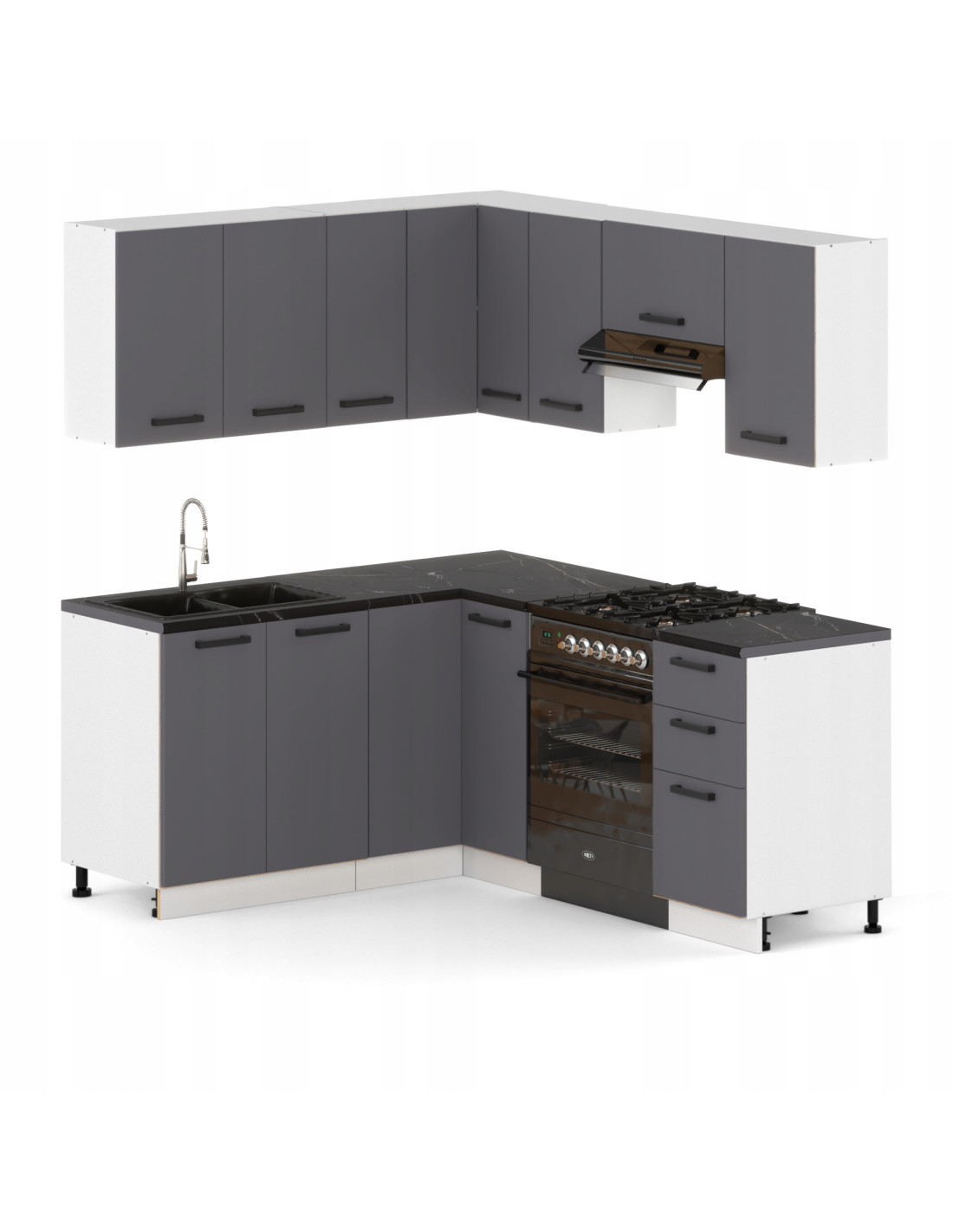 ULWEHOME Meble kuchenne Zestaw mebli kuchennych Kuchnia Milan Narożna | szafka • regał • blat • aneks kuchenny narożny | Antracyt
