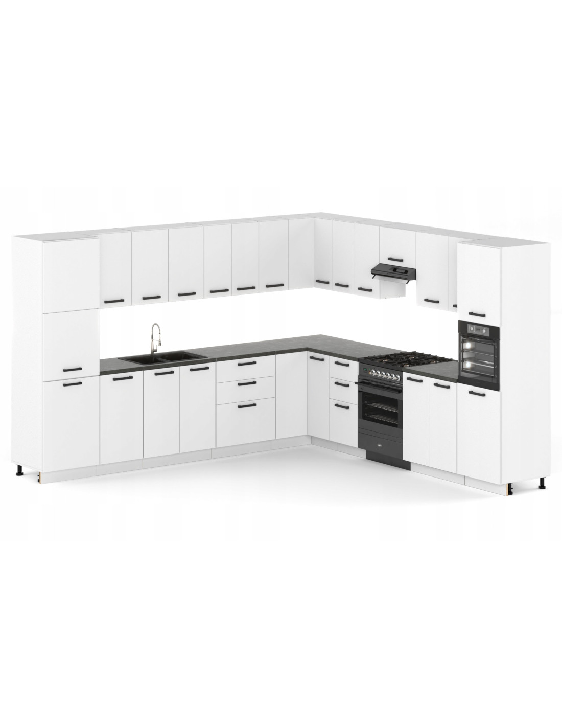ULWEHOME Meble kuchenne Zestaw mebli kuchennych narożnych Kuchnia Narożna Walencja 3,3m|szafka •regał •blat •słupek•zabudowa Biały mat 330cm