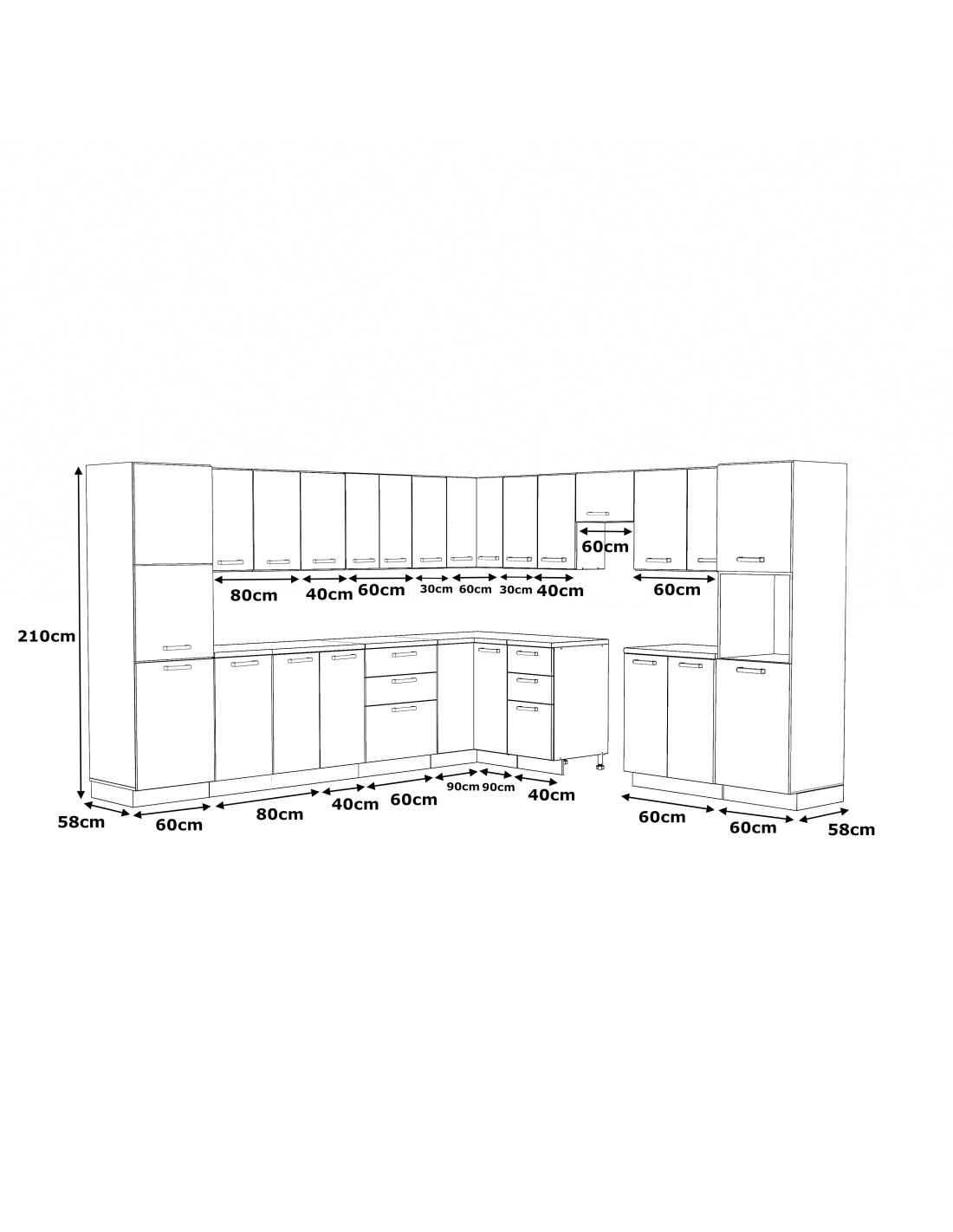 - Blat w zestawie: szerokość 40, 40, 60, 60, 90, 30 cm, głębokość 60 cm, grubość 2,8 cm